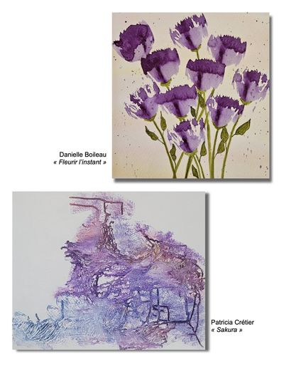 « ÉCLOSIONS, c'est notre amitié qui grandit à chaque rencontre et le bonheur de peindre ensemble à l’atelier de l'amie qui nous a présentées l'une à l'autre, le plaisir de voir une œuvre se révéler sous nos pinceaux, littéralement éclore sous nos yeux.